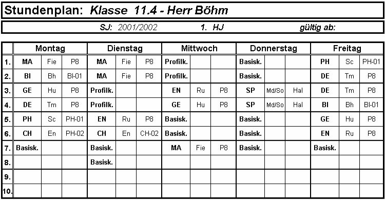 Schema Datenverteilung Axcel Stundenplaner Schema Datenverteilung Axcel Stundenplaner Schema Datenverteilung Axcel Stundenplaner Schema Datenverteilung Axcel Stundenplaner Seit 1997 Der Stundenplaner für Stunden-Planer Axcel Stundenplaner ist kein Programm zur automatisierten Stundenplanerstellung oder Stundenplan-Optimerung. Hier eine kleine Auswahl an professionellen Programmen, die die Möglichkeit bieten Stundenpläne anhand vorher spezifizerten Optimierungskriterien erstellen zu lassen:                      Bitte beachten Sie den Disclaimer zu hier aufgeführten Links Tipp!  (kostenlos) Plan Win Stunden Professionelle Stundenplanung Software zur Ü           Download